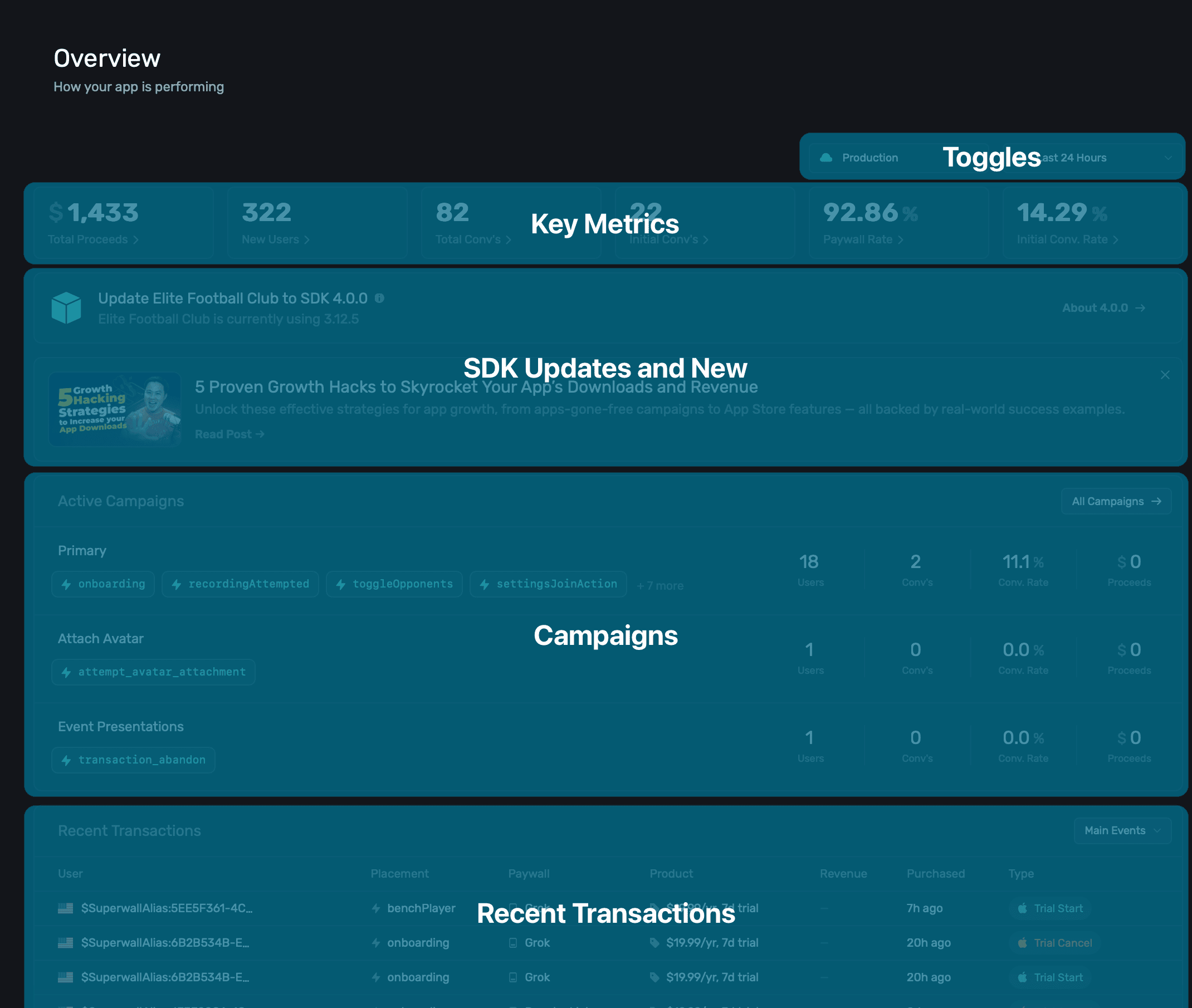 For each campaign, Superwall will show: