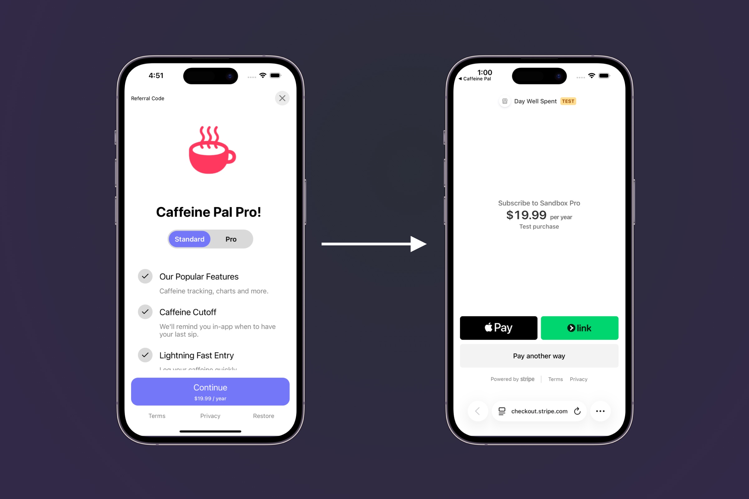 Offer Stripe products directly from your iOS paywalls and perform checkout flows.